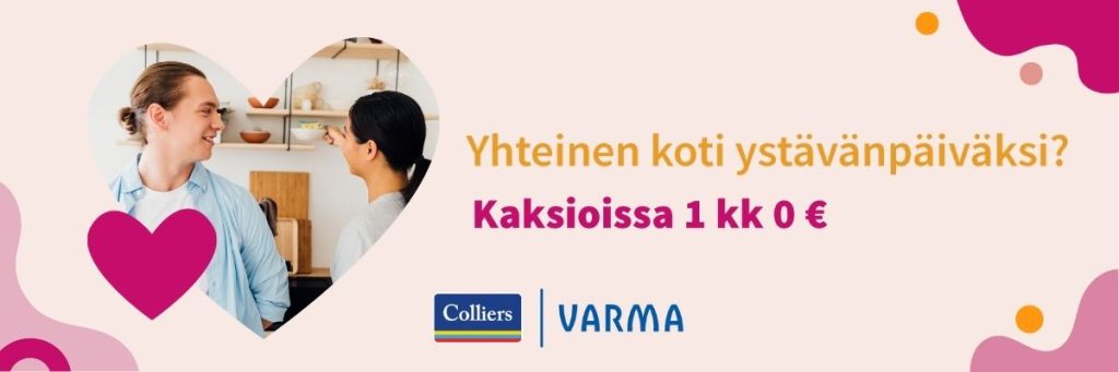 Olisiko vihdoin tullut aika muuttaa yhteen? Tai onko lemmikin kanssa jakamasi yksiö käymässä jo ahtaaksi? Kaksiossa riittää tilaa sujuvaan arkeen rakkaiden kanssa. Hyödynnä nyt Varman tarjoama ystävänpäiväkampanjaetu ja vuokraa uusi kotisi!