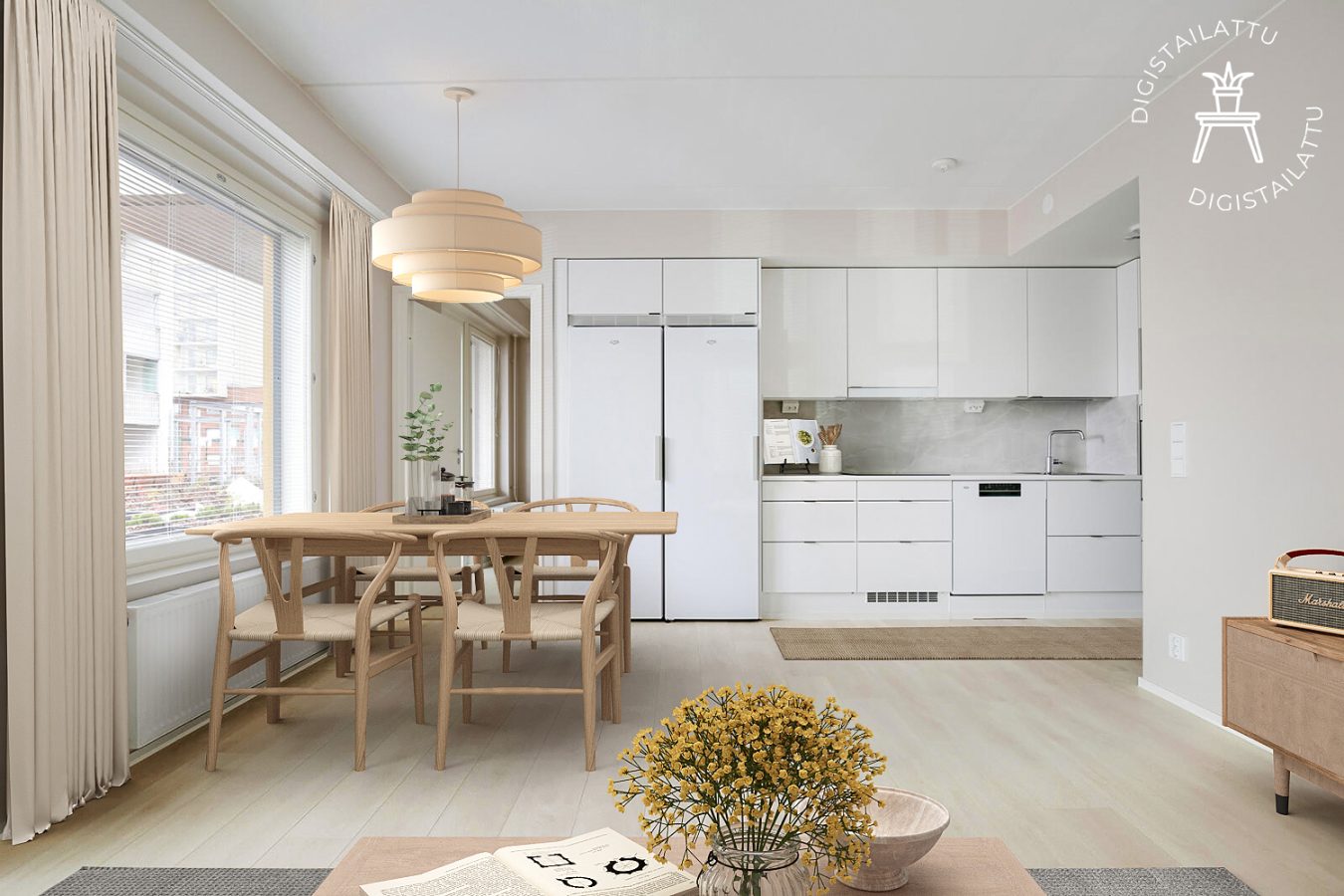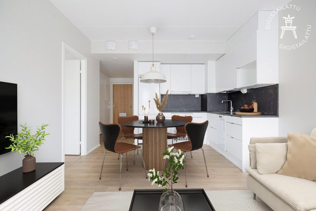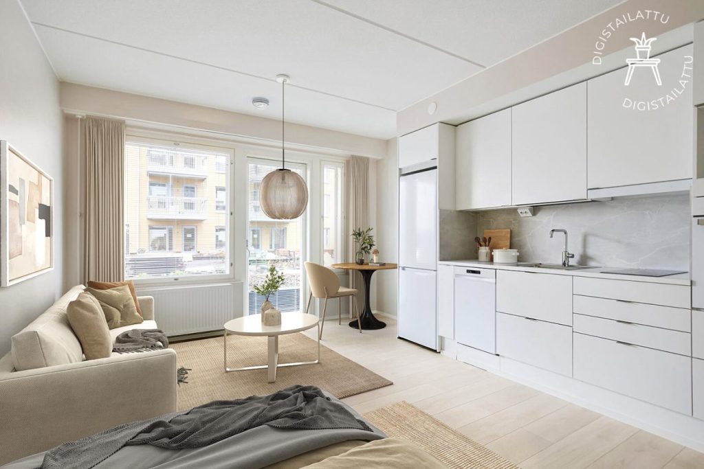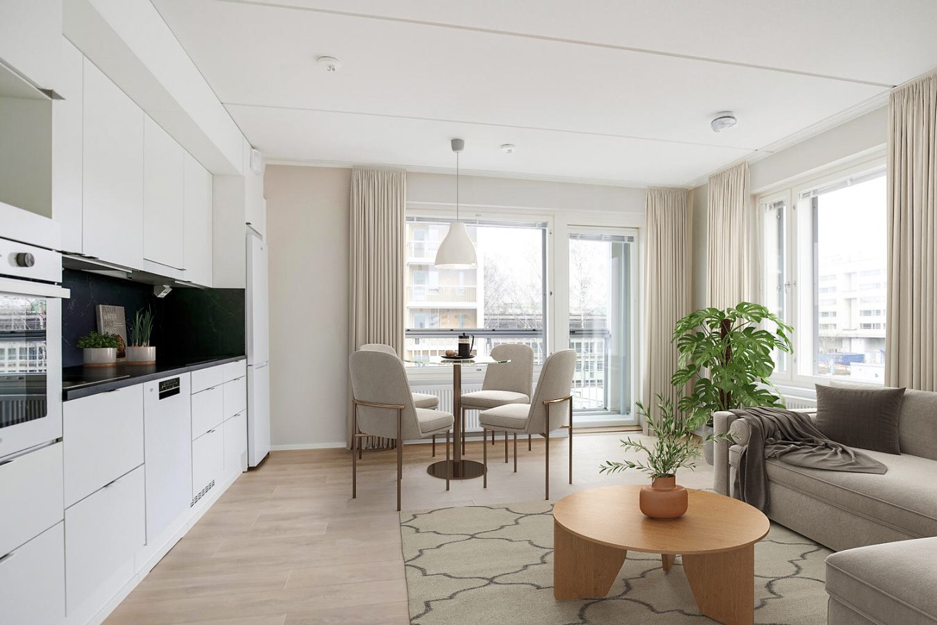 Huom. Havainnekuvat ja digitaalisesti stailatut kuvat ovat suuntaa-antavia ja havinnollistavia kuvia vielä rakenteilla olevasta kohteesta. Valokuvat on otettu malliasunnoista ja eri huoneistoissa on erilaisia ratkaisuja. Muutokset mahdollisia.