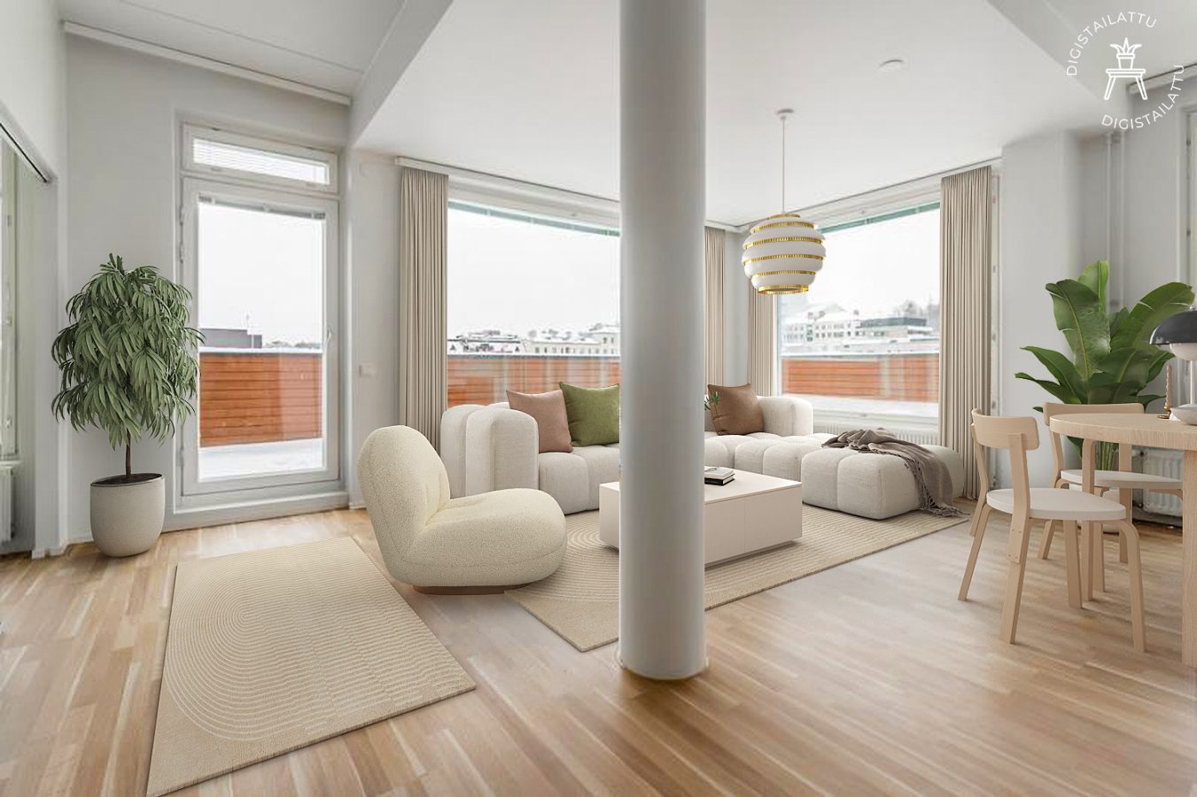 Kohde sijaitsee Lahden kauppatorin viereisessä korttelissa, joten sijainti on mitä loistavin – keskustan palvelut, kaupat ja kulkuyhteydet ovat kaikki lähellä. Suurin osa asunnoista on yksiöitä ja kaksioita, mutta kohteessa on myös muutama isompi perheasunto. Huoneistoissa on pääosin ranskalaiset parvekkeet, tuoden lisää valoa ja tilan tuntua asuntoihin. Kuitenkin ylimpien kerrosten asunnoissa on upeat terassit – todellista kaupunkielämän luksusta.
